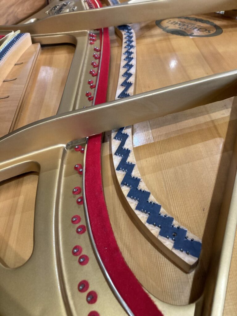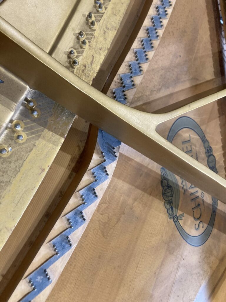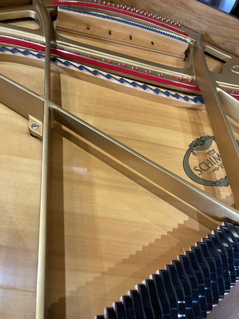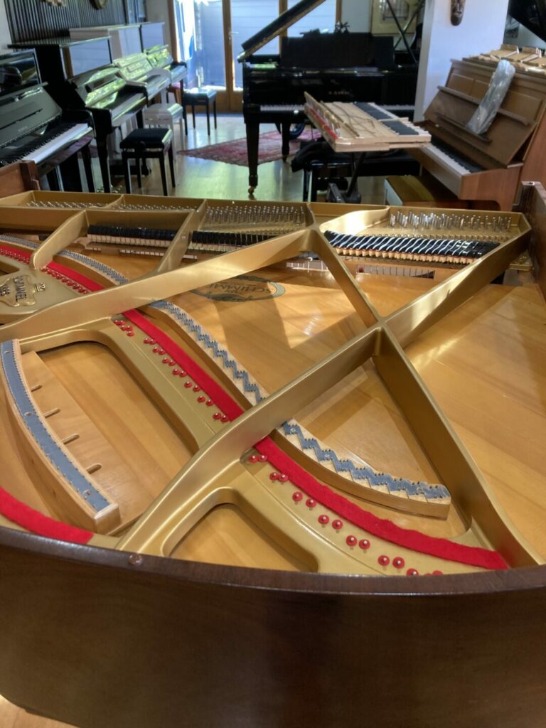 La dernière restauration de l’atelier un joli Piano 1/4 Queue SCHIMMEL années 1980, en noyer vernis satiné : on réécrit l’histoire ou on la continue…