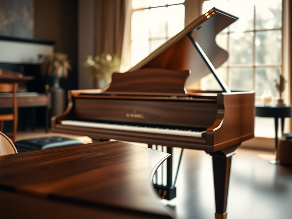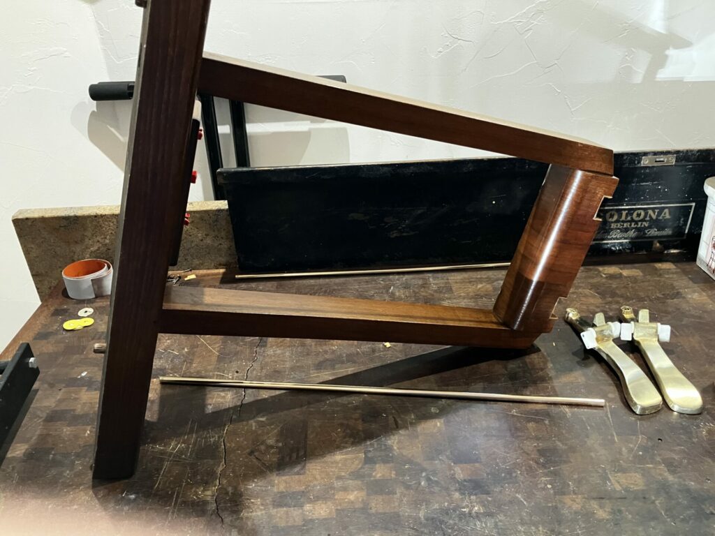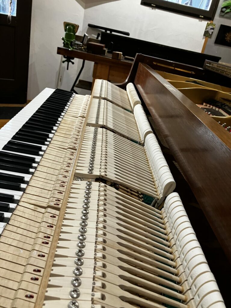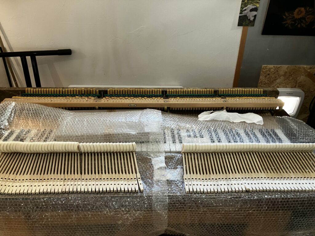 La dernière restauration de l’atelier un joli Piano 1/4 Queue SCHIMMEL années 1980, en noyer vernis satiné : on réécrit l’histoire ou on la continue…